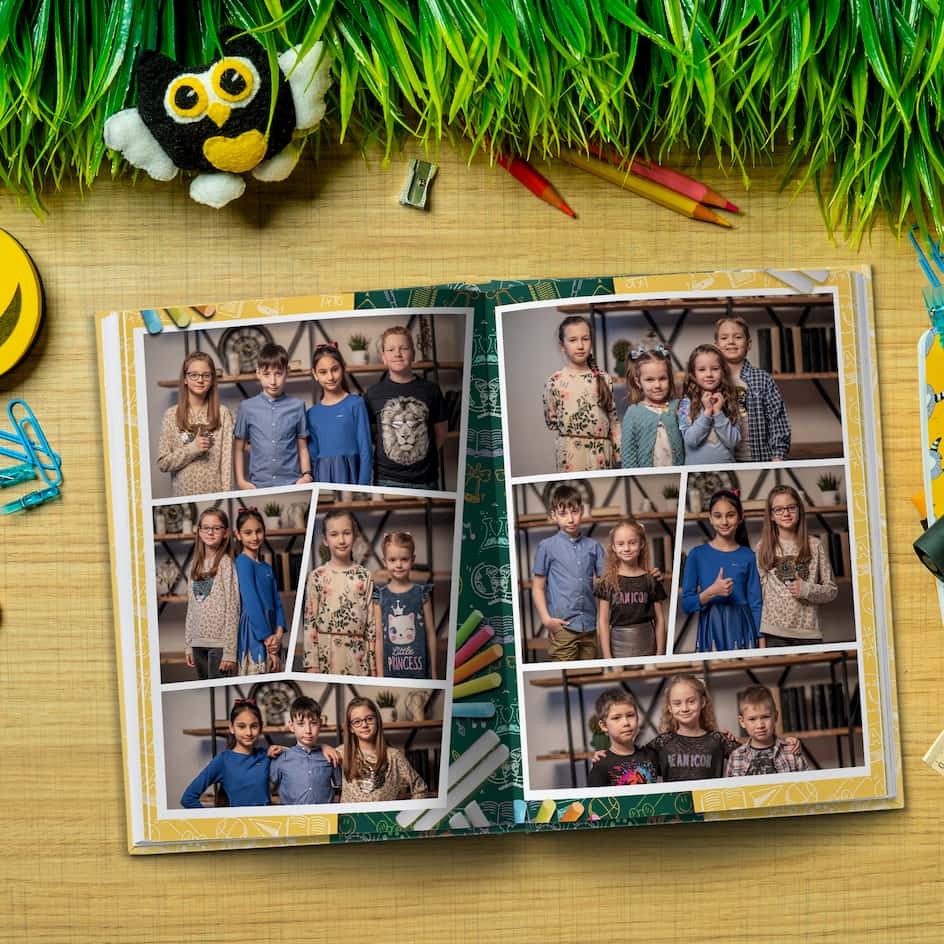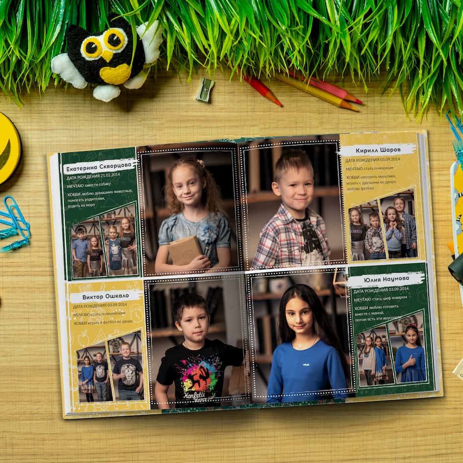 Дизайн в стиле учебного процесса с возможностью сфотографироваться со своими друзьями для 4 класса. Продукт Дуэт