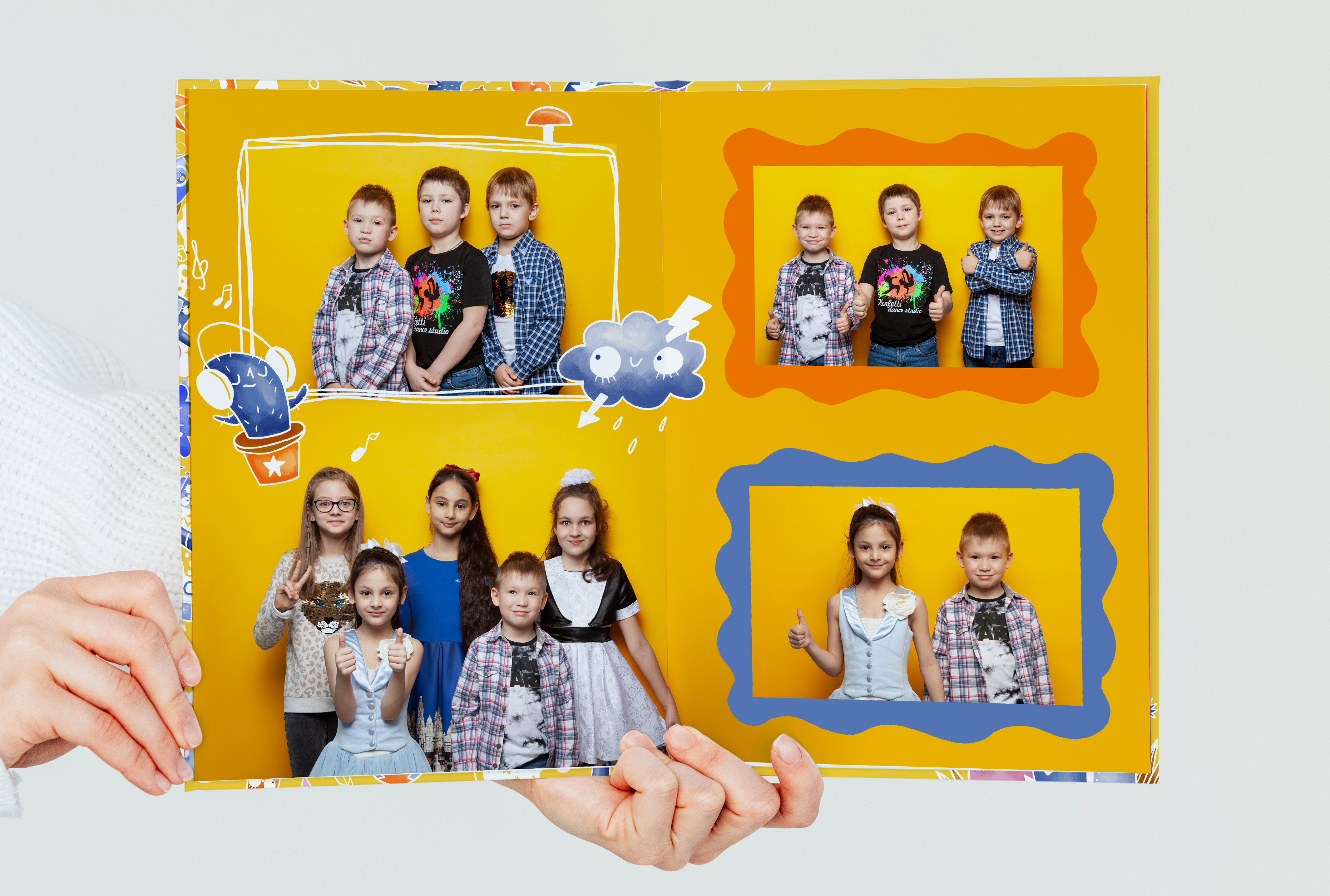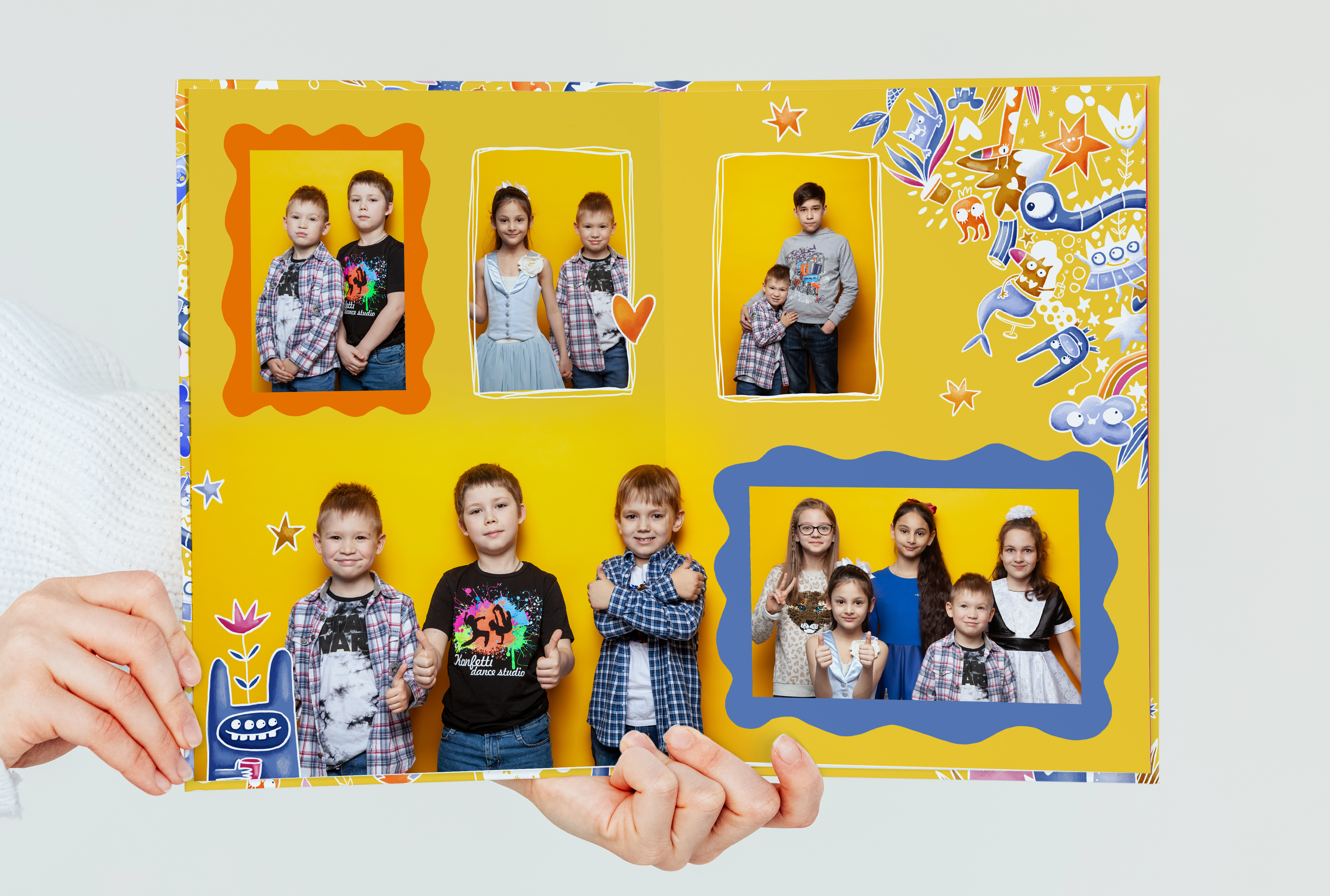 За небольшую доплату вы можете выбрать макет альбома "Эксклюзивный", в котором будут все отснятые фотографии вашего ребенка! Также благодаря этой опции вы можете выбрать разные альбомы и дизайны