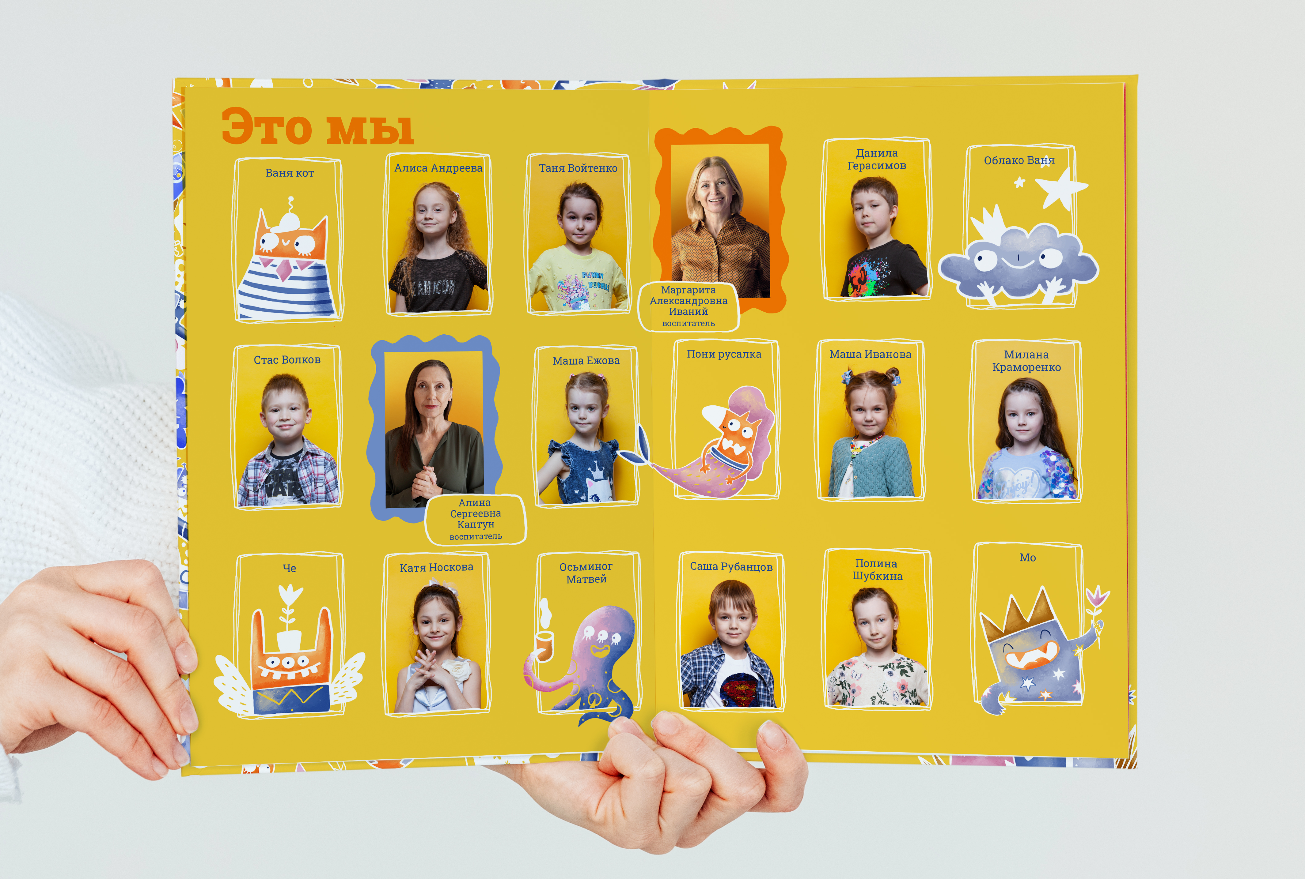 Дизайн в собственными иллюстрированными персонажами для детского сада, максимальное количество фотографий с друзьями. Продукт Дейл