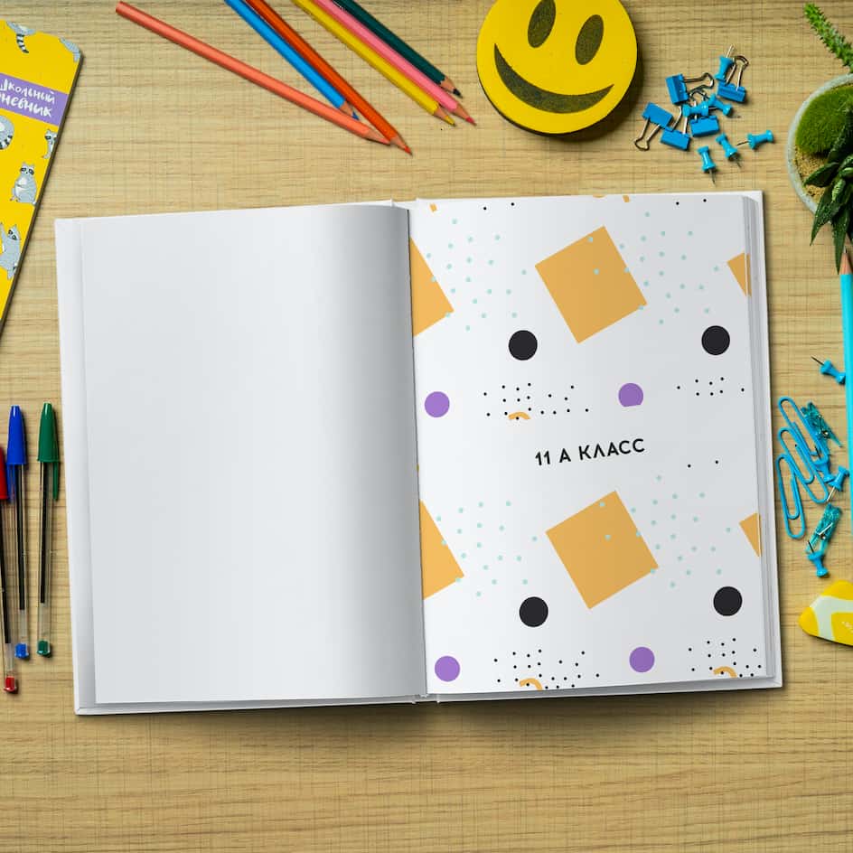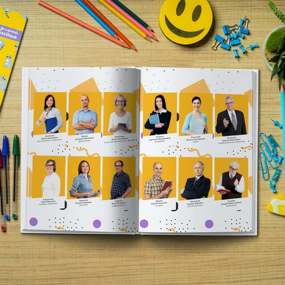 Дизайн в стиле фотографий за школьной партой с двумя учениками на каждой странице. Продукт Дуэт
